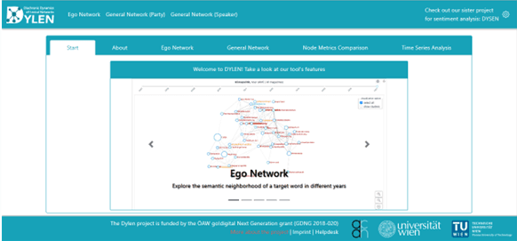 By utilising data from the Austria Media Corpus (amc) and the Corpus of Austrian Parliamentary Records (ParlAT), DYLEN provides valuable insights into how Austrian German lexemes have developed over time. Its open-source nature and user-friendly interface make it an accessible tool for lexicographers and linguists, facilitating both ego network and general network analyses.